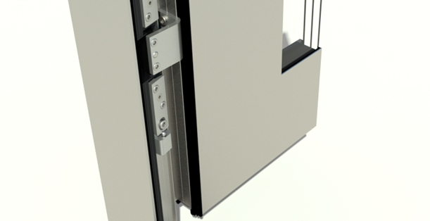 Ein robustes verdeckt liegendes Türband aus Edelstahl.